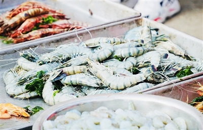 毕吉峰和李晓莲夫妇已经在大集上摆摊十五六年了,今天夫妻俩拉来20多种海鲜,3000多斤的虾、鲍鱼、笔管鱼、黄花鱼、头鱼等品种尤其受欢迎。“我们早上6点半就过来了,卖到下午4点多就差不多了。”李晓莲一边和不断前来询价购买的市民交流,一边断断续续向记者介绍着。