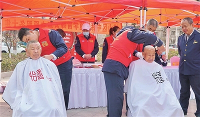 前期,党员志愿者经过调研,了解居民实际需求后,在现场摆设磨剪子、戗菜刀、免费理发、修理纱窗、测量血压、健康咨询等服务摊位,居民可以像“逛市集”一样挑选需要的服务。现场,理发服务因解决了“头”等大事,深受居民的喜爱,不少老人排队等待。针对部分腿脚不便的老人,党员志愿者提前摸排,了解需求后上门送服务,让老人们都有清爽发型。党员志愿者利用闲暇时间,还向现场的小朋友讲解了雷锋同志的事迹。