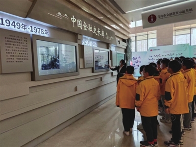 “同学们,首先我们来到中国金融史长廊,本展区通过五个板块向大家展示中国金融发展历程……”在青岛农商银行金融教育示范基地,银海学校六年级二班的同学们跟随讲解员的脚步,走进中国金融史、青岛金融史、农村金融史等展区,借助AI智慧问答、3D模拟展示等30余项现代技术,依托生动翔实的珍贵史料、实物展品追溯中国金融历史。“原来我们中国是世界上最早发行使用纸币的国家,比西方国家早了600多年啊!”短暂的实践活动中,20多位同学都收获颇丰。