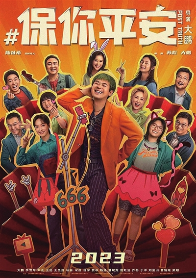 《保你平安》由大鹏自导自演,李雪琴、尹正、王迅等主演。影片讲述了落魄中年魏平安以直播带货卖墓地为生,他的客户韩露过世后被造谣抹黑,魏平安路见不平,辟谣跑断腿,笑料频出,反转不断,而他自己也因此陷入到新的谣言和网暴之中……故事镜头对准当下热门的网络谣言话题,以喜剧形式引人发笑的同时,勾起观众反思与深省。豆瓣7.9分的它创下了大鹏导演生涯的最佳口碑成绩。从《煎饼侠》《缝纫机乐队》到《吉祥如意》再到这一次的《保你平安》,经历了四部导演作品的锤炼,大鹏在接受采访时说,随着年龄增长,经验丰富了,技巧也成熟了。这是他切身感受到的变化,也都体现在作品之中。