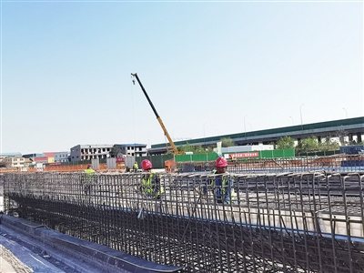 本报5月5日讯 时下,在胶州上合大道新建段G204节点地道项目现场,吊塔林立,挖掘机、推土机等纵横来回,施工人员正埋头苦干。胶州市跑出项目建设的“加速度”,五一期间“假期”变“工期”,支护桩抗拔桩施工有序进行,新建段总施工进度已完成50%。