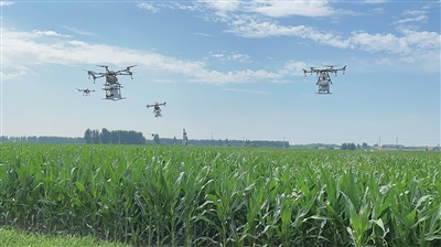 本报8月8日讯 8日,在即墨区绿色增粮示范区,两架植保无人机盘旋在千亩方核心示范区的玉米地上空,在技术人员的遥控指挥下,投下一对对乒乓球大小的银灰色弹丸。这些小小弹丸里面装的是生物防治“尖兵”——赤眼蜂,羽化后的赤眼蜂会精准进入玉米螟等鳞翅目害虫的卵,达到“以虫治虫”的效果。