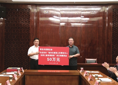 8月20日,青岛市慈善总会“定西市结对关爱孤儿和事实无人抚养儿童慈善救助帮扶项目”捐赠仪式在定西市举行,为定西市1858名孤儿和事实无人抚养儿童捐赠项目资金50万元。