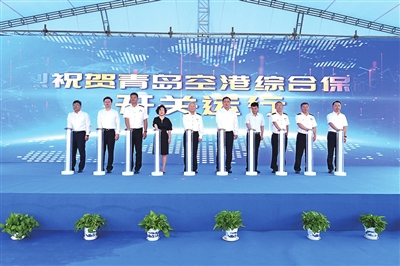 开关运行仪式现场,青岛空港综合保税区、青岛空港型国家物流枢纽基地正式揭牌。