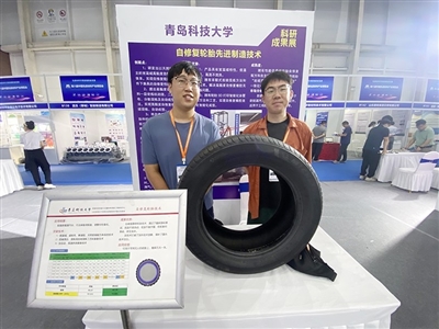 本届展会重磅推出高校、科研(院)所新材料科研成果展示区,重点展示国内高等院校及科研院所的新材料领域最新科研成果。记者在展区找到了素有青岛“斯坦福大学”美誉的青岛科技大学,此次青科大共拥有4个展位,可谓阵容强大,其科研团队带来的自修复轮胎技术、高品质碳纳米管产业化关键技术等让人眼前一亮。“我们这一技术可以应用于新能源车、军车,应用前景还包括军用无人机轮胎,在不规则路面或在较为恶劣的环境下行驶,一旦扎胎,异物拔出后胎压保持率可达93%—110%。”青科大轮胎先进装备与关键材料国家工程研究中心的研究生告诉记者,自修复静音轮胎技术通过了最新国标测试,可以实现轮胎终生免补,该技术也打破了国外技术垄断,填补了国内技术空白,可配套新能源汽车,省去了备胎,使整车轻量化,行驶更加安全。此次参展,团队旨在寻找技术产业化合作伙伴。青科大机电工程学院研三学生毕岚森在讲解高品质碳纳米管产业化关键技术时,不少参展投资人现场就表达了合作意向,看好技术的未来前景,希望助力技术成果转化。据悉,毕岚森所在团队的科研项目已斩获多个科技奖项,其中高品质碳纳米管宏量制备关键技术及产业化应用荣获2022年中国科技产业化促进会科技创新一等奖。