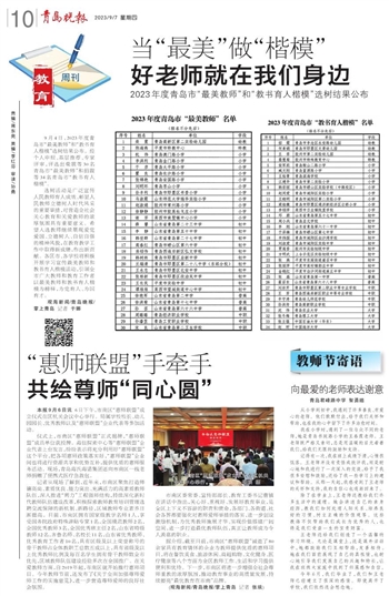 ~~~2023年度青岛市“最美教师”和“教书育人楷模”选树结果公布