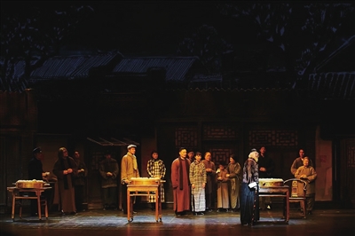 作为最擅长写“人”的平民作家,老舍在《四世同堂》里使用百科全书式的写法,对17个家庭的130个人物进行了均匀而细致的刻画。舞台上,小说的三部分直接转化为三幕话剧,田沁鑫将85万字的原著浓缩为三小时话剧,展开一场白描式的“群像写生”,在“新现实主义”手法的表现下,老北京人的衣、食、住、行立体地呈现在观众眼前。