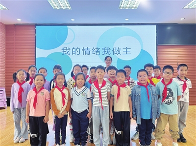 在幼儿时期,绘本《我的情绪小怪兽》备受家长们欢迎。认识情绪并学会驾驭情绪,是人们在一生中需要不断修炼的课题。良好稳定的情绪有助于学生们学习、交友,时常崩溃的情绪也会对他人造成干扰。“你有什么驾驭情绪的好方法?”吴玲刚提出问题,台下已经有多名学生积极举手。“我会运动锻炼,身体分泌的多巴胺会让我快乐起来,赶走情绪小怪兽。”“我会和妈妈沟通,一起去吃美食、购物。”“我会和让我情绪受影响的同学沟通,一起把问题解决。”听到学生们的答案,吴玲均给予积极回应,“你们都做得很好,要在生活学习中学会驾驭情绪。”课堂上,吴玲也分享了自己的感悟,并与学生们一起大声朗读出来:“你不能选择容颜,但你可以展现笑容;你不能左右天气,但你可以改变心情;你不能预知明天,但你可以把握今天;你不能控制他人,但你可以掌握自己;你不能样样顺利,但你可以事事尽心。”吴玲送出寄语:希望孩子们学习驾驭情绪,快乐健康地成长。