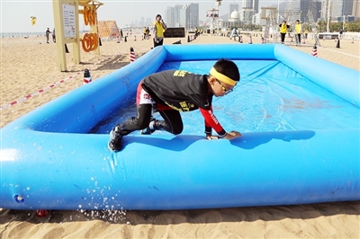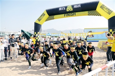阳光、海浪、沙滩、阵阵呐喊声……上周末,青岛石老人海水浴场格外热闹,一场激动人心的沙滩体能赛在这里举行。以海水浴场沙滩场地为背景,赛道全长两公里,原力挑战青岛赛区沙滩体能赛是一项全新的以冒险为灵感的儿童沙滩障碍挑战,包括“沙漠屋脊”“电网穿梭”“小心鳄鱼”“雷阵穿越”等在内的20项左右的体能挑战障碍。比赛分时段、分组比赛,分为亲子组、挑战组、勇士组三个组别,为选手们带来不同难度的体验。