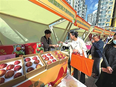 本次活动以黄河大集为载体,聚合胶州、平度、莱西等地优质农产品资源,搭建城乡共建、友好互助的合作平台,以城乡牵手互动、文明共建形式,同享丰收喜悦,共赴秋日盛宴。活动现场,来自胶州、平度、莱西的“产品推荐官”分别带来了各自的特色农产品,重点介绍了胶州大白菜、平度尖叫萝卜、莱西丑梨等优质农产品,吸引了众多居民群众前来购买,实现了“名优特”农产品走出田间地头,走进千家万户,不断丰富城区居民的菜篮子和米袋子。现场人潮涌动,居民群众争相购买烤鹅、土豆、红梨、萝卜、大白菜等农产品,现场氛围热烈。“我早上带孩子散步到这,被这么多新鲜的农品吸引了。买了一兜红梨,特别嫩,皮薄汁水多,给孩子做辅食正好!”市民唐女士展示着手里拿的一袋水果,连连称赞此次活动。