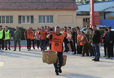 “加油!”“挑上扁担快跑!”在挑担运粮接力比赛现场,欢笑声、加油声、喝彩声此起彼伏。农民变身运动健儿,农活变成竞技项目。在投壶运动项目前,选手们踮起脚,双眼紧紧盯住面前的目标,用腕上的巧劲轻轻一丢,“中了!中了!”投中的笑声不绝于耳……传统竞技游戏投壶与现代农民运动会相融合,给村民带来一场别样体验。