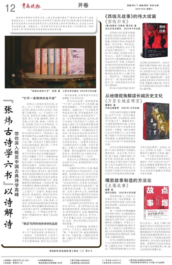 何为诗学品质?张炜很看重“个人性”:必须要为个人的见解、偏僻的见解建立一个非常便捷、通俗的路径。这就决定了“它不能是多种说法的汇集,不停地重复别人的话语,这就不属于诗学的层面了”。这一点有明显的指向性:近年来,图书市场出了很多没有个人创见、杂烩前人成说,而又装扮得好像充满道理、充满趣味的通俗古诗词读物。这类读物的一大问题便是无关诗性,甚至恰恰是诗性本质的反面。张炜对此深感忧虑,所以对自己定的目标便是,一定要保证全书是诗性的表达,一定要努力表达自己品咂出来的个人见解。在这个基础上,又要人人可读,不给人很高的门槛感。要完成通俗性与诗学品格的结合,显然要付出大量的劳动。张炜为此艰难耕耘了二十余年。
