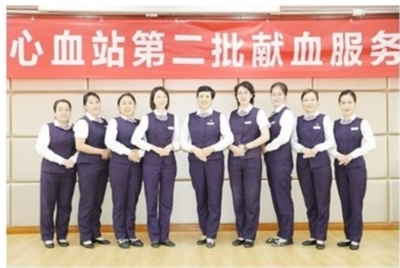 上午8时,记者来到位于隆德路上的市中心血站,二楼机采部的工作人员已提前到岗,开完早会后有个简单的待岗仪式,接着便以饱满的热情投入到机采工作中,等待献血者们的到来。和过去不同的是,机采部的空间布局发生了变化:服务台前移靠近楼梯口、填表区换成沙发、填表桌变身餐饮桌……机采部主任范丽莉告诉记者,这一切都是为了提升服务质量,同时也让献血流程呈“动线”布局。此时,恰好有位提前预约的献血者赶来献血小板,服务台的工作人员立刻上前询问并提供引导帮助。“不需要手动填表,只需要在我们的献血登记设备上刷脸核对录入信息,即可开启献血流程。”献血者顺势完成体检、血液初检,从初检室出来即可在沙发区域休息。此时,在该区域服务的工作人员便会主动上前,递上一杯水,用小创可贴贴住针眼,让献血者安心等待初检结果,合格后即可进入大厅献血。由于省去了手动录入信息、填写表格等步骤,整个献血流程十分简便。