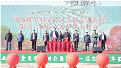 11月4日,青岛市果业高质量发展培训会暨第十一届东大寨苹果丰收节活动在莱西市河头店隆重开幕。活动以“‘苹’分秋色促共富,‘果’然精彩同振兴”为主题,设主会场和分会场,通过节庆平台,宣传地方苹果品牌,推介苹果新品种,普及科学种植技术,为全市苹果产业赋能增势。
