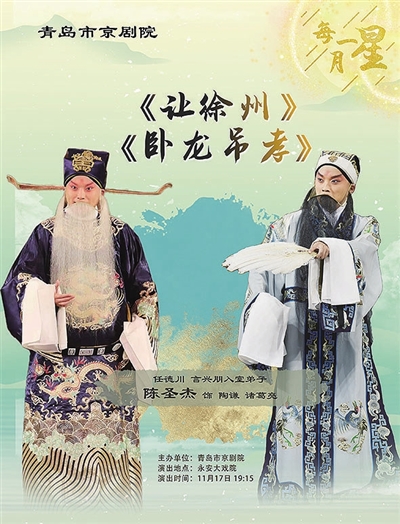 “每月一星”名家名剧展演,本月来听言派老生陈圣杰的好戏。青岛市京剧院自2022年起推出的“每月一星”名家名剧展演,力邀全国各剧团优秀演员来青岛交流演出,让岛城戏迷在家门口欣赏名角表演。11月17日在青岛永安大戏院,上海京剧院国家一级演员、优秀言派老生、第六届中国京剧优秀青年演员研究生班陈圣杰将演出京剧《让徐州》《卧龙吊孝》。