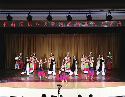 一场《舞彩缤纷》,绚丽了岛城的初冬,温暖了周末的城市生活。11月12日,由市南区文化和旅游局、市南区教育和体育局、各街道办事处主办,市南区文化馆、青岛市歌舞剧院联合承办的市南区秋冬文化惠民精品文艺演出,在宁夏路小学上演了舞蹈专场。小学礼堂打开大门迎接市民观众,街道居民就近坐进礼堂观看演出;市歌舞剧院专业舞蹈演员起舞,为该系列活动舞出了精彩,舞出了圆满。