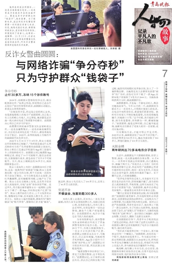 曲圆圆感叹,不是每一个接电话的人,都会对她如此客气。今年10月的一天,曲圆圆因为联系不上一名受害人,只得拨打他家人的电话,在电话中亮明身份后,希望他们抓紧劝阻。孰料对方的家人不相信她是警察,反而觉得她是骗子,对她破口大骂。“这个时候,我只能耐心听着,因为我是警察,我和群众一样,都痛恨骗子。”曲圆圆称,越是这种时候,自己越不能退缩,挂断电话后联系了受害人的另一名家属,成功实施劝阻。