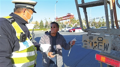 11月17日上午8时许,记者在安顺路滨海路路口看见,打通后的安顺路已成为一条南北主干道,路口经常有20到30辆车分成五排,排队等候通行。上午8时20分许,遵义路中队民警拦下了一辆绿色的自卸车。交警发现,这辆自卸车尾部号牌上沾满了泥土,如果不靠近根本看不清。另外,该车不仅车尾的放大号被泥土遮住,还涉嫌超载。
