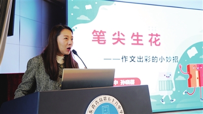 在名师作文课环节,山东省普通高中辩论赛优秀指导教师、共青团青岛市委青年讲师团成员、青岛58中高三语文老师孙晓蓓,为小记者们带来了一堂干货十足又妙趣横生的作文课。这位以教学方法灵活、课堂风格活泼闻名的名师不负期待,全程高能输出,热烈互动不断。她以《笔尖生花——作文出彩的小妙招》为题,讲授了主打实用高效的写作三妙招,助力小记者快速进阶“写作力”。