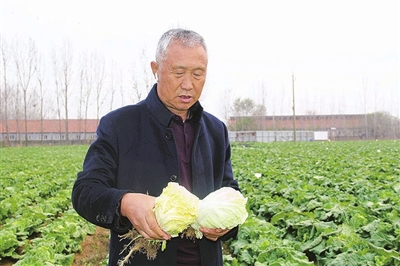 田间地头,研究所所长荆世新随手拨开一棵大白菜的层层“外衣”,露出的菜叶就如同蛋黄颜色一般,这就是胶州大白菜“家族”的新品种——“蛋黄白菜”,还有一种名为“夏妃白菜”,可谓是同种族不同类型的“孪生兄弟”,颜色和个头均有差别。“个头是普通胶州大白菜的一半,单球重在两公斤左右。颜色从外层绿叶到里都是橘黄色,生长周期越长,温度越低,菜叶的颜色越鲜艳。”荆世新向记者介绍白菜家族的新成员。