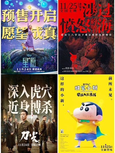 临近年末,电影贺岁档即将开启,11部新片扎堆上映,精彩看点应接不暇:迪士尼动画成立百年特别动画电影《星愿》,高群书导演继《风声》后又一谍战片力作《刀尖》,曹保平导演联袂影后周迅继《李米的猜想》后二搭新作《涉过愤怒的海》,新生代优秀导演忻钰坤全新力作《热搜》。影片涵盖科幻、犯罪、谍战、悬疑、动画、剧情等多种类型。