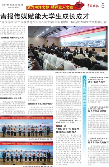 为进一步加强与青岛高校的密切合作,切实履行好媒体社会责任,青岛报业传媒集团旗下的青岛晚报、青岛掌控传媒借势融合发展,发挥媒体平台整合资源的优势,联手科技、文化、人才、健康等多个领域的头部机构,共同打造了以赋能大学生成长成才为己任的“青报校园”平台。“青报校园”通过在高校设立实践基地,全面深入了解在校大学生的成长需求,根据这些需求进行多渠道对接服务,通过组织专家进校园、线上视频对话、联办大型活动、开放实践实习、组团体验考察等方式,为大学生打开一扇走出“象牙塔”,深度了解社会,在实践中成才的全新窗口。