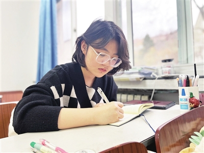 马琴的位置位于教室西北角,靠窗靠暖气,今年她已有200多个日子在这里度过,她对这方小天地甚至熟悉到即使闭上眼睛都能准确摸到自己的座位。赏过了窗外春夏秋三季风景,如今曾经的浓荫褪去,只剩树枝直指天空,依然别有韵味。“英语是考研的‘重头戏’,我原来英语底子有点薄,必须要努力才行。”马琴无心欣赏窗外景色,坐下后立即掏出英语单词书背起来。