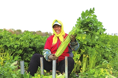 “我们这边的芹菜就是这种内空外脆的,不仅看起来有食欲,吃起来口感更好。”平度市李园街道农业服务中心工作人员刘雪婷说,“今年气候偏暖,芹菜生长周期更长,相对于往年来讲每亩产量有一到两千斤的提升,亩产达到5000公斤以上。”