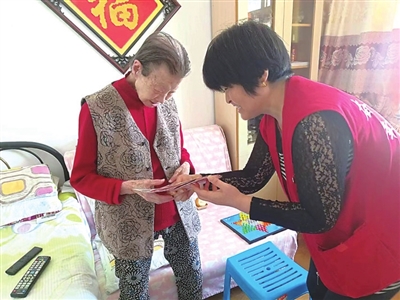 家住兴华路街道邢台路社区的迟瑞荣今年已经103岁了,她膝下的儿女也都年过七旬,腿脚不方便。老人想去社区申领高龄补贴,却担心无法到现场办理。兴华路街道根据老人家里的实际情况,将迟瑞荣列入社区政务服务的帮扶对象,定期到她家中入户宣传帮扶政策,并上门办好了相关手续。对此,老人非常激动,拉着志愿者的手不住地道谢。