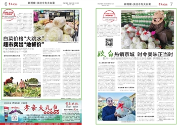 “今年精品‘胶白’在北京销售的价格与去年差不多,两棵一箱还是80元。”赵世国说,从2008年开始,他在北京宣武区马莲道设立了胶州大白菜办事处和直销点,并把“胶白”摆进了北京庄胜崇广大厦和东门外大厦等多家超市,每箱两棵白菜售价80元,今年的销售价格维持不变。首批一千箱胶州大白菜12月1日到北京后,仅一天时间便销售大半,担心销售断货,他赶紧协调工人包装白菜。