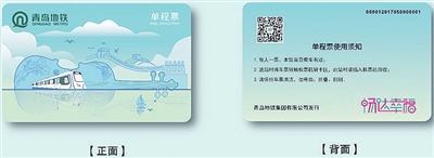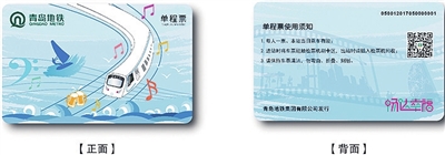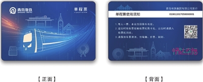 其中,单程票设计方案(四选一),方案1根据6号线建设理念为“安全、创新、绿色、智慧”,融合5G技术、大数据、人工智能、TACS等新技术元素,整体设计氛围环绕着科技感、创新感、智慧感,用蓝色调线条勾勒出6号线地铁列车、轨道、信号,从隧道中飞速驶出代表着青岛地铁6号线技术、创新能力飞速发展,运用琴岛之眼、山王河湿地公园、齐长城、花科子山公园特色景点,整体大气且富有科技感。方案2采用水墨手法描绘,运用6号线列车造型,融合6号线途经的特色景点琴岛之眼、山王河湿地公园、珠山国家森林公园,整体运用墨蓝色,并搭配五月的风“一抹红”,形成视觉冲击,打造“蓝天白云、红瓦绿树”的壮丽画风。水墨画是中国画的一种,以形绘神,使之在浓郁的文化气息中突显了青岛地铁和青岛这座城市的魅力。方案3列车造型、线路“C”、6号线线路色与大海、音浪、谱号相互结合,汲取6号线沿途的大海、沙滩、浪花、啤酒、电影、帆船元素,票卡背面以电影胶片的形式记录了青岛繁忙的码头作业、城市建设和地铁盾构机作业影像,五线谱化作轨道、音符和啤酒伴随两旁,营造惬意生活。方案4整体颜色运用6号线线路色“蔚蓝色”,浅蓝、深蓝调色搭配,背景齐长城作为陪衬。青岛有“琴岛”的别称,我国第一把小提琴产于青岛,取小提琴为元素主体,倒影在水中半明半暗。小提琴上的耐冬花作为点缀,整个票面清新舒适,体现了青岛的人文、浪漫与温馨。