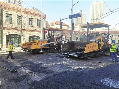 7日上午,记者在中山路现场看到,摊铺机匀速前进,压路机来回穿梭,呈现一片繁忙景象,施工人员正在紧张地进行着沥青摊铺作业。据介绍,此次中山路改造提升南起太平路,北至胶州路,全长约1080米,主要包含雨污水管网扩容、电力排管增容、路基路面翻建、人行道维修等,目前项目已完成地下管网施工及道路下面层沥青摊铺,正在进行上面层沥青摊铺施工。