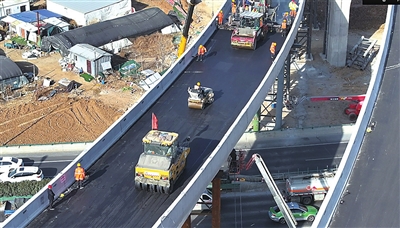 随着桥梁主体施工最后一道工序桥面沥青混凝土摊铺顺利完工,重庆路快速路工程正式吹响了通车冲刺号角。