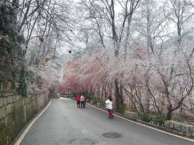 九水游览区雨凇景观。
