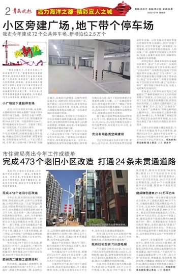 “停车方便多了,不用天天担心下班回家停不下车。”看着眼前的永嘉路停车场,家住吴兴路的王先生高兴地说道。“人居其所、车有其位”,事关人民群众的获得感、幸福感。在省住房城乡建设厅公布的山东省132个城市更新示范项目中,青岛14个项目入选,其中停车设施建设项目占据三席。今年以来,我市多举措推进停车设施建设,今年建成72个公共停车场、新增泊位2.5万个。
