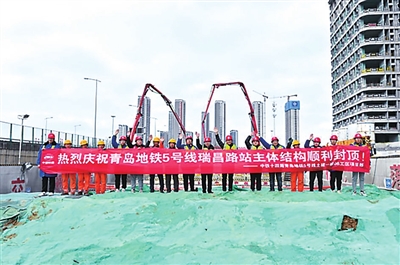 本报12月13日讯 13日,青岛地铁5号线瑞昌路站主体结构顺利封顶,是5号线第3座封顶的车站。同日,湖岛站-瑞昌路站区间左线盾构机“云瑞号”自瑞昌路站顺利始发。瑞昌路站一日迎来“双节点”。