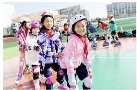 “让每一个孩子热爱体育、喜欢运动,拥有阳光的性格、健康的身体是学校努力的方向。”为丰富学校体育课程体系,麦岛小学从2017年起将轮滑运动引入体育课堂。学生们在轮滑课穿戴装备与护具中,自理能力提高了;在初学过程中摔倒又艰难地爬起来,面对困难与挫折的勇气增加了;在一步一步的滑行中,享受到成功的快乐;在快速的滑行中,感受到风从耳边吹过的兴奋;在校长杯比赛中,体验到体育比赛的激烈与魅力。