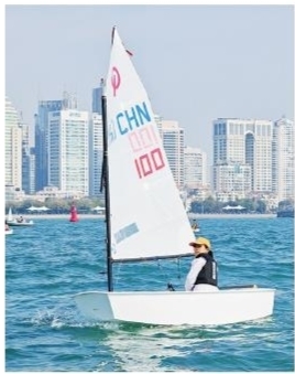 获得国家一级运动员称号的王雨馨是五年级学生,她是学校帆船队中年轻的“老队员”。2020年秋天,二年级的她无意间看到帆船队在训练,就问姜振老师可不可以跟着学,姜老师说学会游泳就可以来。王雨馨用了一个月的时间学会游泳,顺利进入帆船队。提起最初的训练,王雨馨记忆犹新,“我刚开始是一个帆船小白,在帆船队里,姜老师教我们绳结、绑帆、装船,慢慢地掌握了帆船知识和技能。2020年寒假让我特别难忘,我随队到深圳冬训,8岁的我第一次离开父母。经过20多天的刻苦训练,我们8名队员中有3名队员被淘汰,我继续参加后面的训练。”2021年,三年级的王雨馨第一次参加比赛,就在青岛市“市长杯”帆船比赛中获得女子乙组的冠军,今年又获得山东省帆船冠军赛女子组长距离冠军。