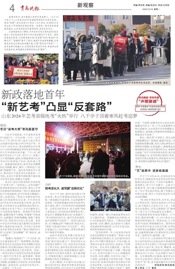 最寒冷的天,涌动着最火热的艺考追梦心。12月16日至17日,山东省2024年普通高等学校艺术类专业统一考试“鸣锣”,青岛共设4个考区、14个考点,近8000名艺考生在-6℃的寒风里奔赴考场。这是新一轮艺考改革落地实施后,山东迎来的首次省级统考,备受社会关注。