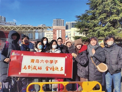 考点外,家长们和老师们自发形成了“送考大军”。“老师放心,没有问题!”进考场前看到自己的老师,青岛六中考生热情地和老师拥抱。“我们主要是来给孩子们加油鼓劲,孩子们的状态都挺好,看上去很自信。”青岛六中教学指导处副主任巩海燕告诉记者,今年该校有300多名学生参加省美术统考,20多名班主任和美术专业教师组成送考队伍,分散在全市各个考点,为学生提供关心与关爱的送考服务。熟悉的声音和笑脸,温暖的握手与拥抱,伴随着“马到成功,金榜题名”的鲜艳横幅,驱散了紧张和不安,带给考生们信心和力量。青岛中学艺术学科组长盖文强等四名老师专程从高新区赶来送考,为学校6名参加美术统考的学生准备了象征夺魁的向日葵,还定制了加油横幅“‘青’骑出征,谁与争锋”。