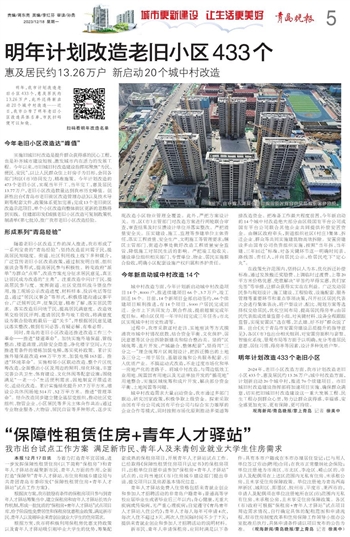 实施旧城旧村改造是提升群众获得感的民心工程,也是补齐城市建设短板、激发城市内在活力的发展工程。今年以来,市旧城旧村改造建设指挥部聚焦“为民、便民、安民”,以让人民群众住上好房子为目标,会同各部门和区(市)协同发力、精准施策。今年计划改造的473个老旧小区,实现当年开工、当年完工,惠及居民13.77万户,老旧小区改造数量达到我市历史峰值。创新性出台《青岛市老旧街区改造管理办法》以及技术导则等配套文件,政策体系更加完善;完成13个老旧街区改造示范项目,单个小区改造向整体街区更新的思路得到实践。住建部印发《城镇老旧小区改造可复制政策机制清单(第七批)》,推广我市老旧小区改造经验。