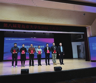 本报12月17日讯 14日,第八届青岛市大学生科技节闭幕式在中国海洋大学举行。活动以视频短片的形式对第八届大学生科技节活动成果进行了总结回顾,会上为获奖作品和获奖个人、优秀指导教师、优秀组织单位颁奖。