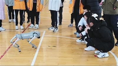 科技展内容丰富多彩,有无人机列队表演、机器人、机器狗、电磁炮对战、3D打印等,每一个展位前都围满了求知若渴的同学。其中一位拄着拐的同学在无人机表演时驻足很久,他告诉记者:“脚意外骨折了,但是科技是我的最爱,一定要来看。”还有一位高一的同学带着相机在机器狗面前拍视频,她告诉记者:“机器狗能跑能跳,还能双腿站立,我感觉科技感很足,就像科幻电影里的一样。”