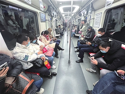 12月18日下午5时许,记者在东韩车站搭乘地铁时发现,车厢内绝大多数乘客,无论是坐着还是站着,都在低头看手机。部分站立的乘客倚靠在车厢上,一只手捧着手机,另一只手却没有扶着栏杆。