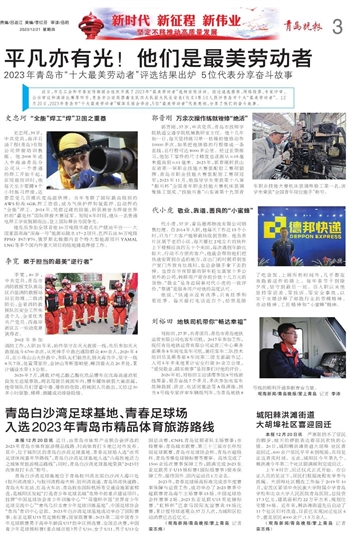 本报12月20日讯 近日,由青岛市体育产业联合会评选的2023年青岛市体育旅游精品线路、时尚体育打卡地已对外发布。其中,位于城阳区的青岛白沙湾足球基地、青春足球场入选“冰雪足球休闲嘉年华路线”,青岛白沙湾足球基地入选“山海胜地活力之城体育旅游精品路线”;同时,青岛白沙湾足球基地荣获“2023时尚体育打卡点”称号。
