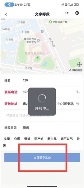 本报12月20日讯 近日,青岛市急救中心接到一个特殊的急救来电,一则语音播报。调度员王芳芳从播报中获悉这是一位听障人士的求救电话,呼救者不能用语言表达,于是使用青岛急救微信小程序“文字呼救”进行报警……