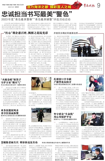 打击犯罪,他们冲锋在前;危急关头,他们挺身而出;服务群众,他们情真意切;执法执勤,他们无怨无悔。今年以来,全市公安机关忠实履行捍卫政治安全、维护社会安定、保障人民安宁的新时代使命任务,为守护城市安全和人民幸福生活矢志奋斗,书写了一个又一个感人至深的警察故事,涌现出一批可歌可泣的模范个人和集体。近日,为选树典型、激励先进,2023年度“青岛最美警察”“青岛最美辅警”开始评选。本次活动坚持“公平、公正、公开”原则,最终评选出“青岛最美警察”“青岛最美警察团队”和“青岛最美辅警”,并举行发布仪式,汇聚榜样力量,奏响“最美”旋律,展示新时代青岛公安良好形象。