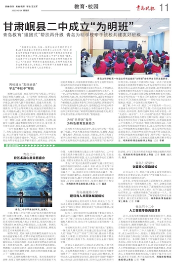 据了解,今年5月,岷县二中干部教师一行15人来到青岛为明学校开展了为期3天的交流和培训学习活动,培训结束,教师们感叹青岛为明学校是一所“先进的一流学校”。7月,中组部“组团式”帮扶培训基地揭牌仪式在青岛为明学校顺利举行,岷县二中与青岛为明学校签订了《青岛为明学校、甘肃省岷县第二中学教育人才“组团式”帮扶合作框架协议》,与青岛为明学校结成结对帮扶关系,青岛为明学校将为岷县二中特色教育发展提供帮助。青岛为明学校校长雷丽霞表示,将借助专家团队的力量开展交流活动,为两校特色教育发展提供指导,两所学校一起努力,互相学习,共同研究,为教育高质量发展贡献为明力量。观海新闻/青岛晚报/掌上青岛 记者 于娜