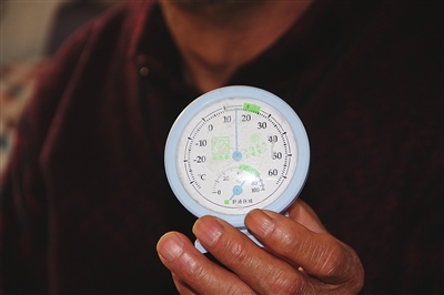 19日上午10时,记者来到吕先生家,他上身穿着一件厚毛衣,外穿一个羽绒马甲。走入客厅,记者看到电视机柜上的温度计显示17.5℃。“上周六天气冷,家里也就16℃,没别的办法,只能多穿衣服。”他家中67岁的老父亲说道。吕先生的母亲也向记者诉说道:“这个天外面虽然冷,我也不愿意呆在家里,一般去超市溜达溜达还暖和。”她边说边向记者展示自己“里三层外三层”套着的冬衣。