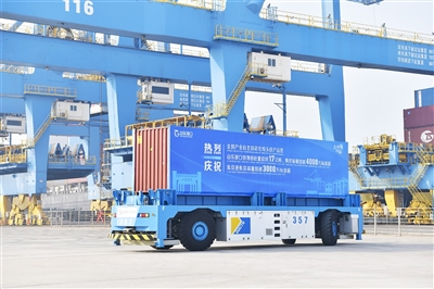 12月27日,山东省世界级港口建设三年行动推进会在山东港口青岛港自动化码头举行,全国首个全国产全自主自动化集装箱码头——山东港口青岛港自动化码头(三期)投产运营,我国自动化码头研发建设领域实现全新突破。山东港口2023年货物吞吐量超越17亿吨,集装箱吞吐量超越4000万标箱,实现历史性量级新跨越,山东省世界级港口群建设迈出坚实一步。